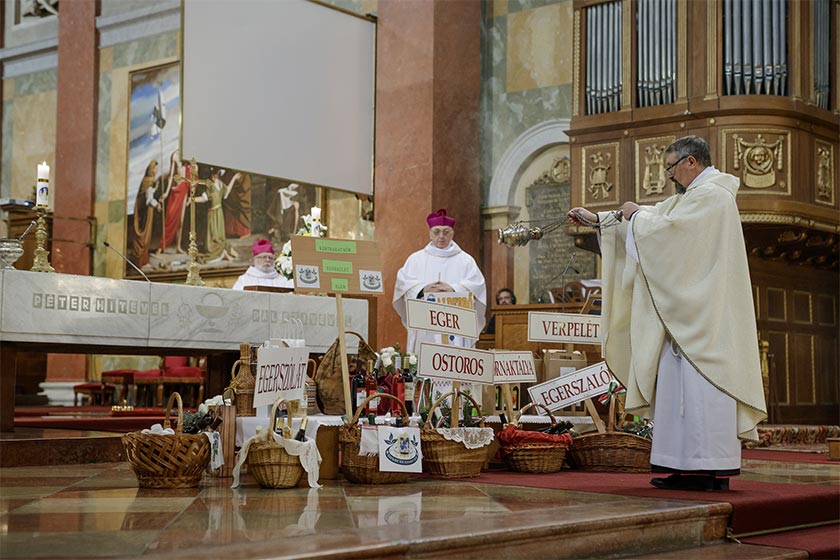 – A bor az isteni bőkezűség jelképe, amely a szőlőtő termése és az emberi munka gyümölcse. Mi pedig hálásak vagyunk, hogy az Úr ránk bízta e művét, s a hála mellett bizony ott egy másik érzés is, hiszen ha a bor eszünkbe jut, s megkóstoljuk, az öröm is megjelenik az ember életében – fogalmazott a szeminárium rektora, hozzátéve: ezen a napon nem csak Isten ajándékát ünnepeljük, hanem a szőlészek-borászok munkáját, s azt, hogy a szakemberek dolgozhattak.